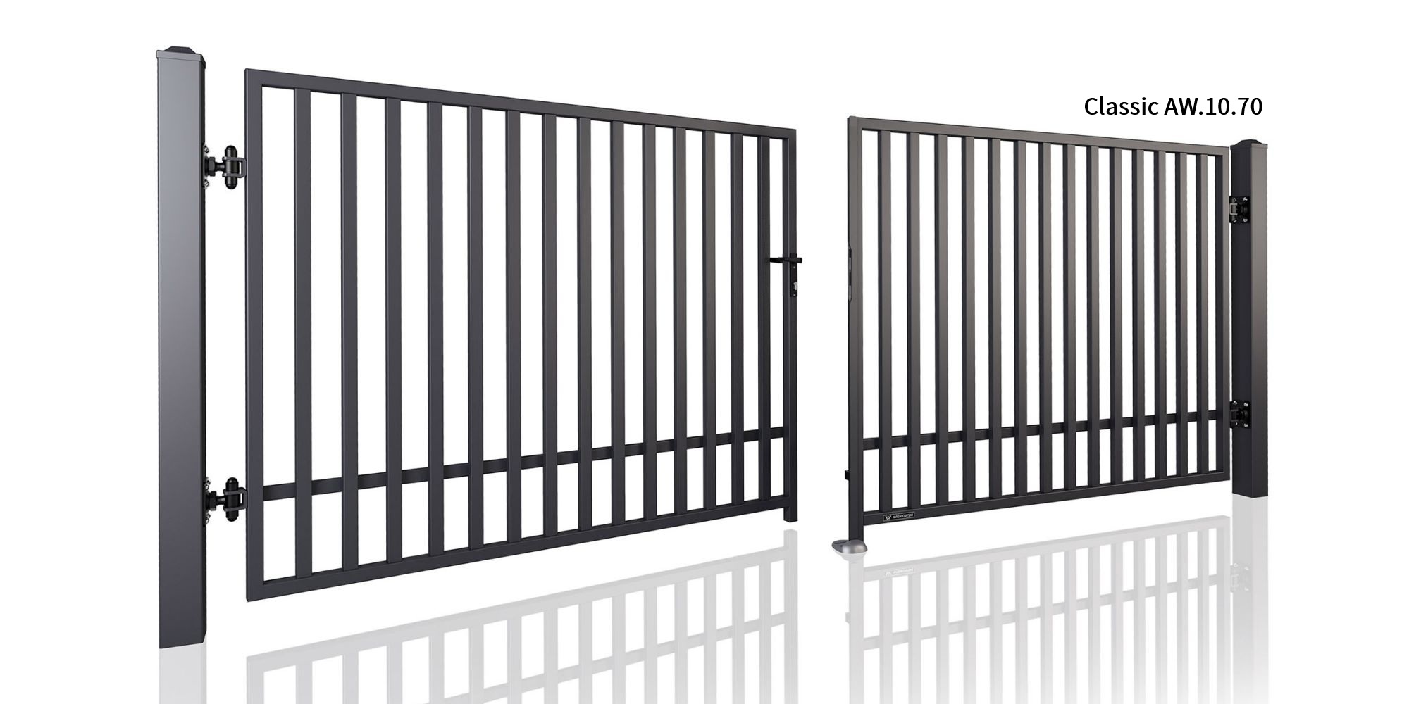 Das Doppelflügeltor Classic ist wahlweise mit Motor oder ohne Motor erhältlich.