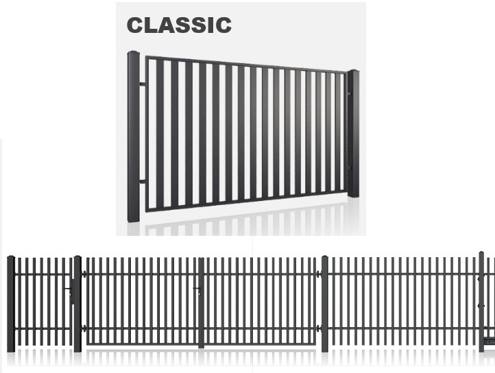 Ausführung: geschlossene Stahlprofile mit Kappen in der oberen Linie, 40x27 [mm]